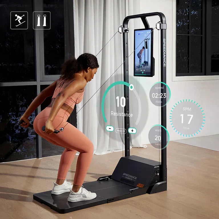 Elevate your cardio training with Speediance's innovative Ski Mode. With two ski handles and 10 customizable height settings, this mode transforms your workout into a dynamic ski erg experience. Perfect for those looking to add an extra dimension to their cardio training, Ski Mode offers efficient and exhilarating workouts for every season.